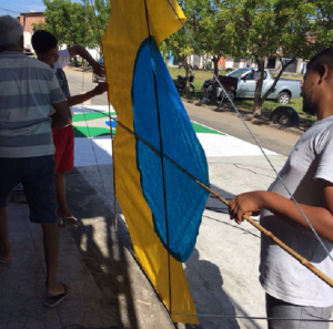 Silva explica que a pipa demorou dois dias para ficar pronta e foi feita com linhas, pedaços finos de madeira, além de papel colorido e cordão. Segundo ele, é possível até soltar a pipa no ar.